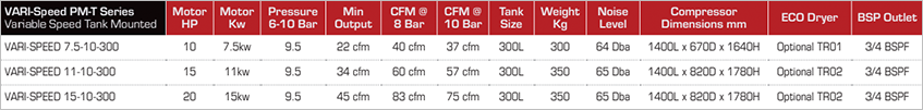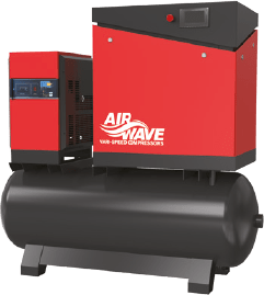 These rotary screw air compressors are engineered with variable speed technology to adjust output according to compressed air demand. This flexibility significantly reduces energy consumption and operational costs. Ideal for various industrial applications requiring efficient and reliable compressed air solutions. Receiver mounted with built on dryer options